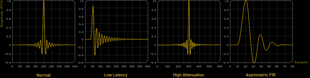 在單個時域內針對信號的反應提供了Noraml,Low Latency,High Attenuation,Asymmetric FIR四種不同的DAC微調形式。即使是同一音源也能讓用戶超越聽覺的界限,感受到”聲音的表情”。
